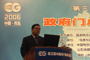 2006年9月16日—17日,由國務院辦公廳秘書局、國務院辦公廳電子政務中心主辦,青島市委市政府計算機中心、《信息化建設》雜志社等承辦的第三屆中國電子政務論壇在青島市舉行。受論壇邀請,參與青島市網(wǎng)上審批系統(tǒng)建設的浪潮集團,攜其浪潮政務審批平臺(ECGAP)及政府行政審批信息化解決方案參加了這次論壇。在標有“浪潮”企業(yè)標識的主會場背景板前,浪潮集團電子政務領域的技術專家張峰發(fā)表了題為《精鑄服務平臺貫通互聯(lián)政務》的演講,對浪潮先進的政務信息化解決方案做了精彩論述,受到了與會300多名省、市級政府信息化建設主管領導的青睞與關注。