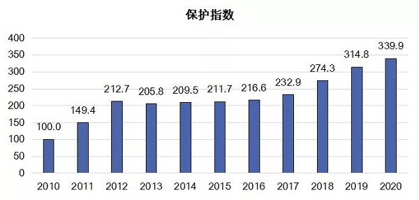 2010~2020年全國(guó)知識(shí)產(chǎn)權(quán)發(fā)展指數(shù)