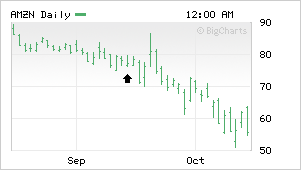 Amazon在9月15日時收于77.34,市值331億美元;11月20日收盤價35.03美元,市值150.2億美元,市值縮水180.8億美元,縮水幅度達(dá)55%。