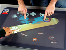 Surface是一款微軟推出的桌面式多點觸摸式電腦,可在平板桌面上多點操控,其內(nèi)安裝了5個攝像頭,能識別放在屏幕上的印刷材料。