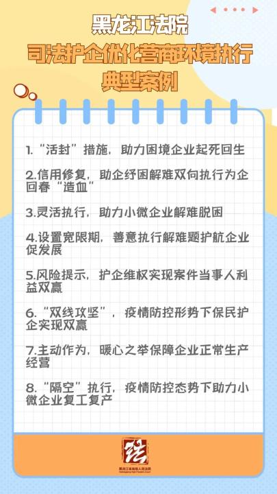為全面貫徹落實(shí)黑龍江省委“能力作風(fēng)建設(shè)年”及優(yōu)化營商環(huán)境專項(xiàng)行動的部署要求,推動兩項(xiàng)活動走深走實(shí),黑龍江高院立足執(zhí)行工作職能,充分發(fā)揮執(zhí)行“三統(tǒng)一”管理優(yōu)勢,連續(xù)5年在全省組織開展“雷霆”執(zhí)行行動,助力中小微企業(yè)健康發(fā)展,有力服務(wù)保障“六保”“六穩(wěn)”和“六個龍江”建設(shè)?,F(xiàn)從全省法院執(zhí)行案件中選取了8件司法護(hù)企優(yōu)化營商環(huán)境典型案例予以公布。