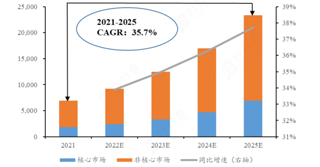 根據(jù)海比研究院數(shù)據(jù),2022 年信創(chuàng)產(chǎn)業(yè)規(guī)模有望達 9220.2億元,近五年復合增速達到 35.7%,預計 2025 年突破 2 萬億元。