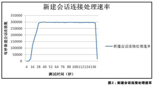 在應(yīng)用負載均衡的測試中,深信服M6000-AD接受了兩臺斯伯倫通信公司的Acalanche 2900測試儀表,對M6000-AD的HTTP每秒新建會話連接處理能力、應(yīng)用層吞吐量和HTTP最大并發(fā)會話能力進行了測試。其結(jié)果分別如下圖所示: