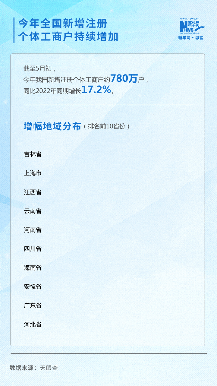 在政策的加持下,以“小店”為代表的個體工商戶們正在迅速恢復活力。多地商業(yè)區(qū)熱鬧紅火,店鋪里人頭攢動。天眼查數(shù)據(jù)顯示,截至5月初,今年我國新增注冊個體工商戶約780萬戶,同比2022年同期增長17.2%。