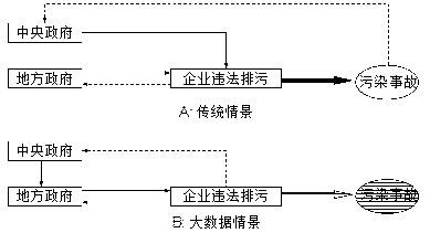 對(duì)于地方政府來(lái)說(shuō),大數(shù)據(jù)增強(qiáng)了地方政府環(huán)境治理能力。傳統(tǒng)的環(huán)境執(zhí)法取證方式受空間和時(shí)間的局限,而大數(shù)據(jù)通過(guò)突破時(shí)空局限降低執(zhí)法成本,提高了地方政府環(huán)境治理能力。如,污染物在線監(jiān)測(cè)大數(shù)據(jù)對(duì)企業(yè)排污狀況進(jìn)行實(shí)時(shí)記錄,執(zhí)法人員通過(guò)分析大數(shù)據(jù)篩選出超標(biāo)排放企業(yè),從而有針對(duì)性地開展現(xiàn)場(chǎng)精準(zhǔn)執(zhí)法,提高了對(duì)企業(yè)違法排污行為的識(shí)別概率,增強(qiáng)了執(zhí)法能力。因而在大數(shù)據(jù)時(shí)代,地方政府的環(huán)境監(jiān)管責(zé)任并不會(huì)減輕,隨著履職能力的提高還會(huì)加強(qiáng)。