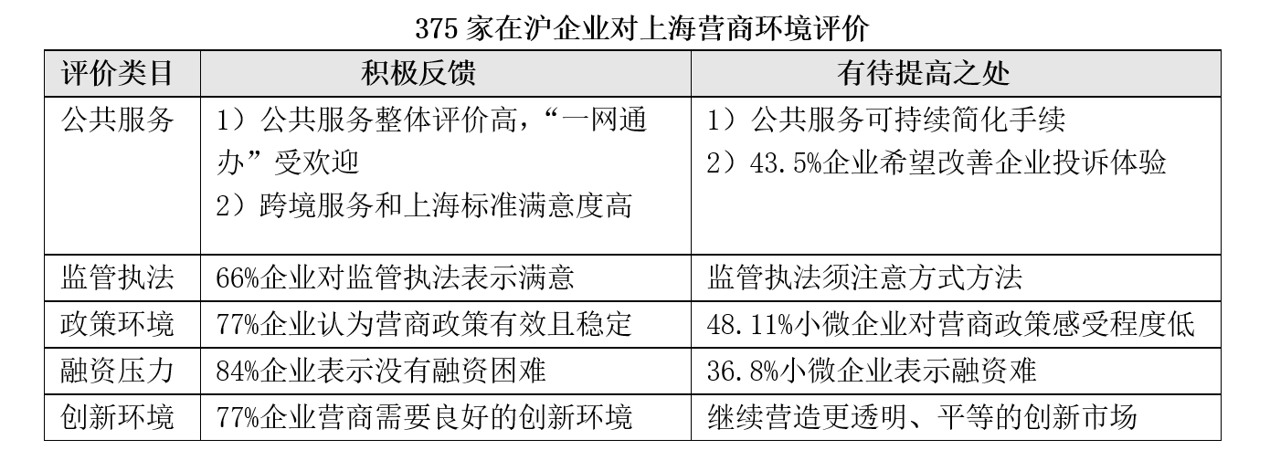 經(jīng)統(tǒng)計(jì)分析,81%的樣本企業(yè)對上海營商環(huán)境總體評(píng)價(jià)為“很滿意”或“滿意”。主要發(fā)現(xiàn)如下: