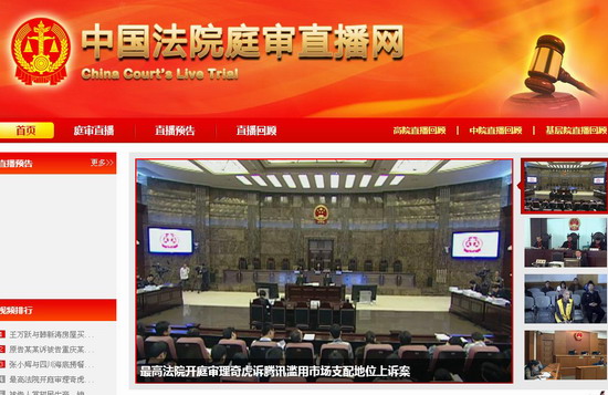 為貫徹黨的十八大關(guān)于完善司法公開制度的要求,落實最高人民法院院長周強在全國法院司法公開工作推進會上提出的全面推進司法公開工作的講話精神,中國法院網(wǎng)決定開通中國法院庭審直播網(wǎng),為全國各地法院搭建便捷的庭審直播平臺。直播網(wǎng)目前設(shè)“庭審直播”、“直播預(yù)告”和“直播回顧”等欄目,全國各高、中級和基層人民法院均可通過該平臺在網(wǎng)上直播案件庭審,公眾也可通過“直播回顧”欄目查看以往的庭審實況。網(wǎng)站提供的視頻查詢功能還可以使公眾很方便地查詢到自己所關(guān)注案件的庭審視頻。