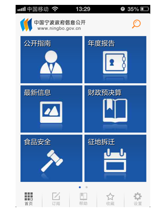 公眾通過(guò)應(yīng)用平臺(tái)下載政府信息公開客戶端,即可快速進(jìn)行訪問(wèn),無(wú)需登陸政府門戶網(wǎng)站,操作簡(jiǎn)便,界面友好,通過(guò)移動(dòng)設(shè)備觸摸屏,獲得最佳的用戶體驗(yàn),符合現(xiàn)代瀏覽習(xí)慣。
