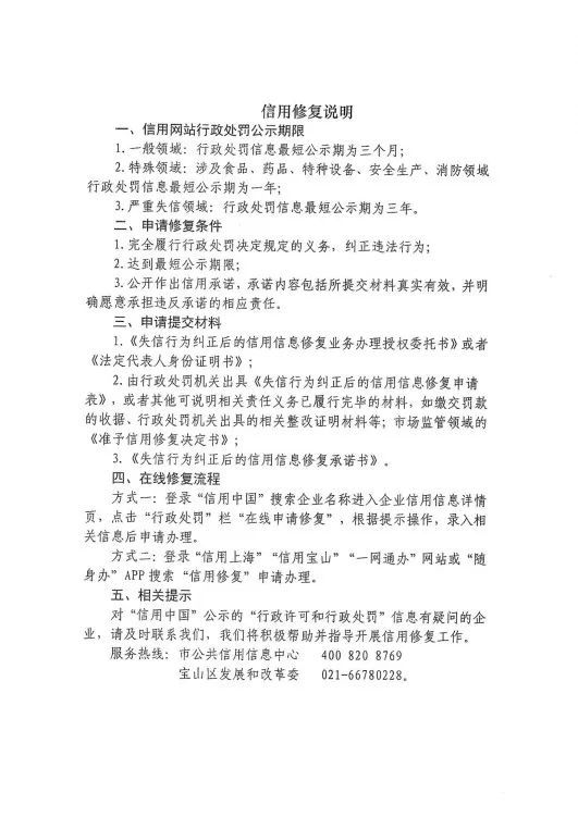 《信用修復告知書》按照“誰處罰、誰提醒、誰指導”原則,主動告知經營主體行政處罰信息公示途徑、修復條件及流程等內容,推動失信企業(yè)及時進行信用修復。