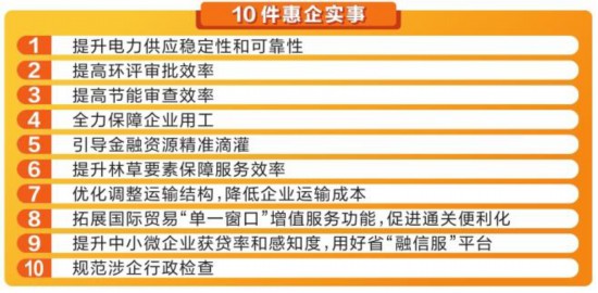 10件惠企實(shí)事是云南省大力優(yōu)化營(yíng)商環(huán)境的重要抓手,也是持續(xù)打通要素保障難點(diǎn)、堵點(diǎn)的具體途徑。通過(guò)每年集中力量辦好一批關(guān)系企業(yè)切身利益的實(shí)事,通過(guò)解決“一件事”、做到破解“一類(lèi)事”,以實(shí)實(shí)在在的工作成果讓經(jīng)營(yíng)主體有感有得。