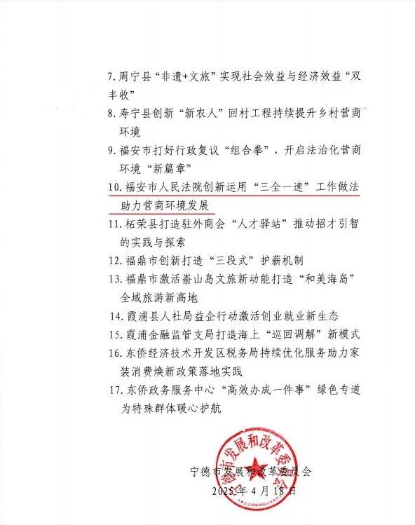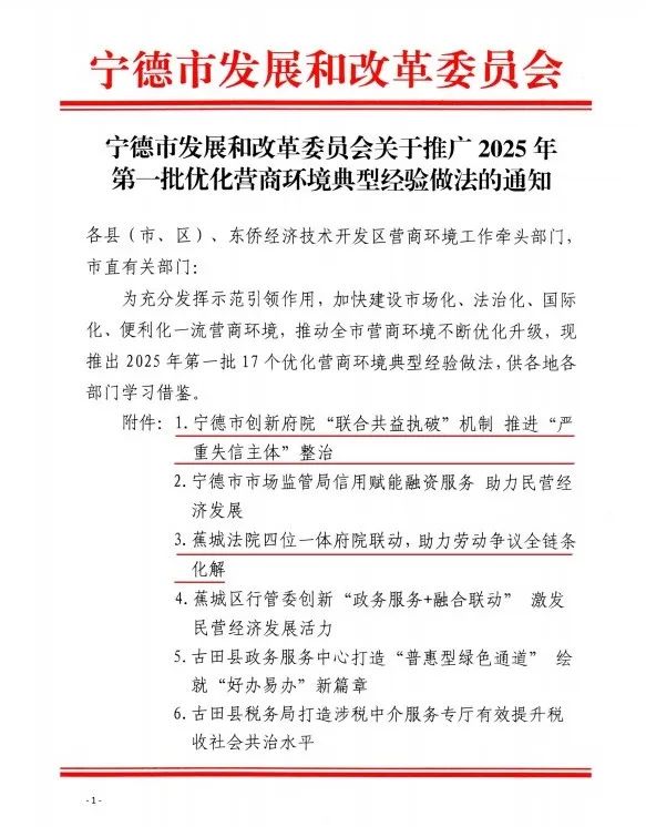 近日,寧德市發(fā)改委推出2025年首批17項具有代表性的優(yōu)化營商環(huán)境典型經(jīng)驗做法其中,寧德法院三項典型經(jīng)驗做法入選。一起來看看~