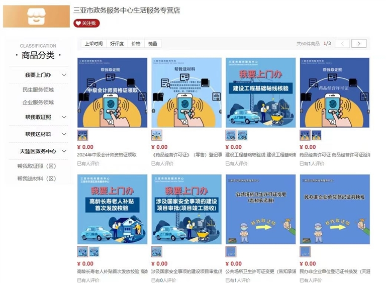 在互聯(lián)網(wǎng)飛速發(fā)展的時代,人們早已習(xí)慣通過電商平臺購買生活所需。三亞市營商環(huán)境建設(shè)局去年底大膽探索,上線全國首家政務(wù)網(wǎng)店——“三亞市政務(wù)服務(wù)中心生活服務(wù)專營店”,開啟“云端政務(wù)”新模式,為企業(yè)和群眾帶來了全新的政務(wù)服務(wù)體驗。據(jù)了解,上線“三亞市政務(wù)服務(wù)中心生活服務(wù)專營店”以來,共辦理了71項業(yè)務(wù),其中最受歡迎的辦理事項為“幫我取證照”和“我要上門辦”。