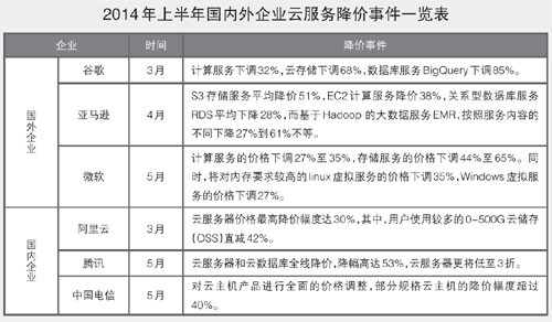 隨著云服務提供商的服務不斷完善,云計算市場呈現(xiàn)出群雄割據(jù)的態(tài)勢,價格戰(zhàn)則成為云計算巨頭競爭的重要手段。上半年,谷歌、亞馬遜、微軟等企業(yè)相繼大幅降低云服務價格,搶奪公有云服務市場。谷歌在3月將其云計算服務下調(diào)32%,亞馬遜云服務價格下降10%至65%不等,微軟的云存儲價格降幅最高達到65%。