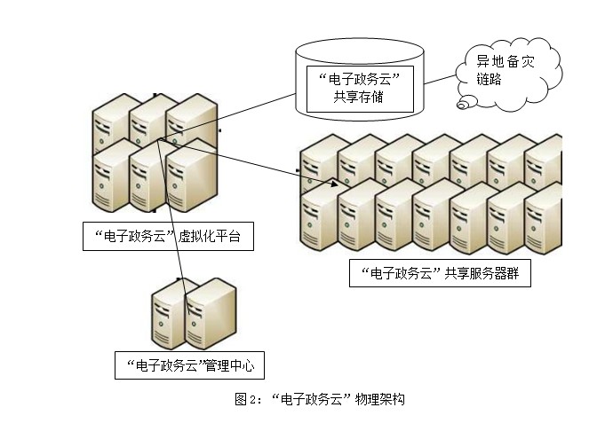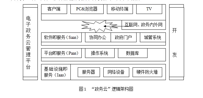 1.1 “電子政務云”的基礎硬件平臺。該平臺由各政府單位的中心機房、政務內外網絡、路由設備和現有的若干臺服務器組建。