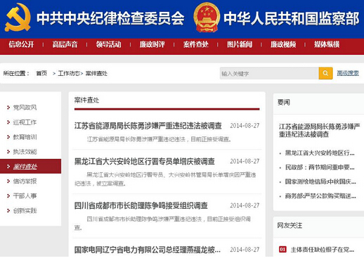 對于中紀(jì)委監(jiān)察部網(wǎng)站“案件查處”欄目公布的各地官員被查處的信息,大部分省份紀(jì)委監(jiān)察廳網(wǎng)站都在其“案件查處”、“曝光臺”、“權(quán)威發(fā)布”等欄目中及時發(fā)布,如江西、湖南、陜西、廣東、山東等省份。