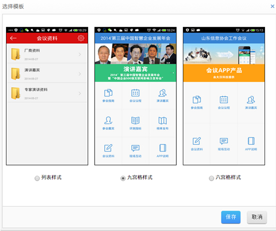 首頁提供列表式、六宮格、九宮格多種版式,每個欄目都可以根據(jù)會議實際用途自定義類型,無論是圖文、文件、外鏈還是文件夾、互動交流,全方位滿足會議所有信息需求,并可根據(jù)欄目內(nèi)容自定義圖標(biāo),生成獨(dú)一無二個性化應(yīng)用,這些欄目設(shè)置功能強(qiáng)大、操作簡單只需要點擊鼠標(biāo)即可實現(xiàn)。