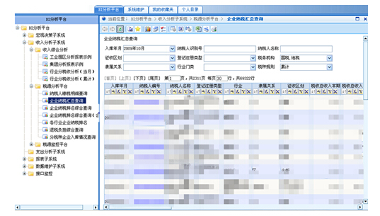 通過(guò)財(cái)稅庫(kù)銀橫向聯(lián)網(wǎng)系統(tǒng)(TIPS2.0)的數(shù)據(jù)和稅務(wù)登記信息的結(jié)合,以及用戶定義企業(yè)屬性(工業(yè)園區(qū)、企業(yè)集團(tuán)等),滿足對(duì)財(cái)稅收入以及重點(diǎn)稅源的分析需求,提供對(duì)稅收的多角度分析,為各層管理人員提供統(tǒng)計(jì)和分析數(shù)據(jù),協(xié)助其及時(shí)發(fā)現(xiàn)問(wèn)題并快速響應(yīng)。