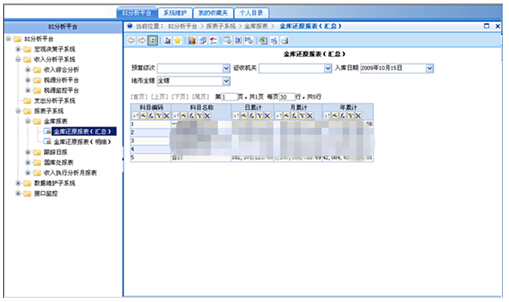 通過(guò)和人民銀行TBS系統(tǒng)的數(shù)據(jù)接口,獲取會(huì)計(jì)基礎(chǔ)數(shù)據(jù),還原為精確到角分的報(bào)表,提供分部門(mén)、分級(jí)次等的匯總和查詢的功能,降低財(cái)政的人工獲取和處理數(shù)據(jù)的工作量。