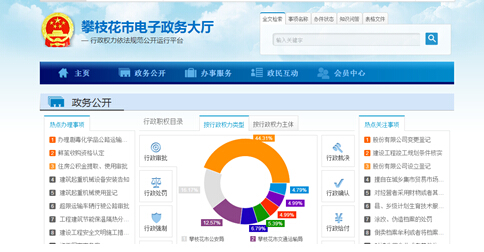 攀枝花市電子政務大廳于2014年5月1日正式開通,公眾登錄我市市、縣兩級政府門戶網(wǎng)站,就可查詢了解市、縣兩級政府部門各類行政權(quán)力事項。我市行政權(quán)力依法規(guī)范公開運行平臺實現(xiàn)省、市、縣三級互聯(lián)互通,我市市級部門6165 項行政權(quán)力事項及權(quán)力依據(jù)、自由裁量權(quán)等事項要素向社會公開“晾曬”。