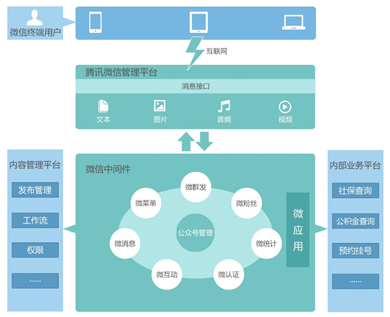 大漢微信公眾服務(wù)管理平臺(tái)可以針對(duì)特點(diǎn)客戶實(shí)際業(yè)務(wù)進(jìn)行深入集成。比如,我們?yōu)檎憬≌善湔畔⒐_、政民互動(dòng)、在線辦事等業(yè)務(wù)系統(tǒng)的集成。
