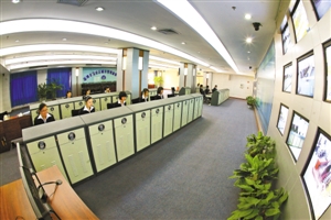 深圳寶安區(qū)數(shù)字化城管監(jiān)督指揮中心大廳內(nèi),后臺工作人員正在通過網(wǎng)絡系統(tǒng),實時接收群眾投訴,第一時間處置信息采集員提交的城管問題,從而實現(xiàn)城管的精細化、點對點快捷服務。