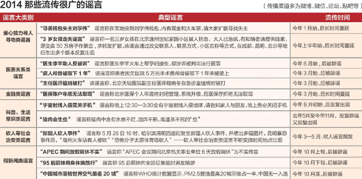 資事件性、具有重大影響和社會危害的謠言變少,而與生活密切相關(guān)的謠言變多——在即將過去的2014年,無論是網(wǎng)友直觀感受,還是業(yè)界專家觀察,對這一變化都有共識。這類謠言看似比較“軟”——有些披著科學的外衣、有些溫情脈脈,但針對它們的辟謠,卻似乎更難。很多過一段時間就重新流行一輪的老謠言都屬于這類,比如今年廣為流傳的3歲女孩被拐、豬肉生蟲等老謠言。這些謠言有何迷惑伎倆?為何廣為傳播、辟而不絕?