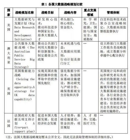 通過對各國的大數(shù)據(jù)戰(zhàn)略規(guī)劃比較,發(fā)現(xiàn)既有共同點又存在明顯差異。