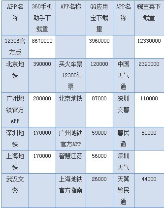 從三大平臺排行前十的APP來看,穩(wěn)居各大平臺政務(wù)APP下載量榜首。熱門政務(wù)APP大致可分如下幾類:一是交通類,包括火車、飛機、地鐵等;二是公安類,尤為突出的是各地的交警;三是天氣類,由氣象局推出的應(yīng)用成為不少人的必備軟件。