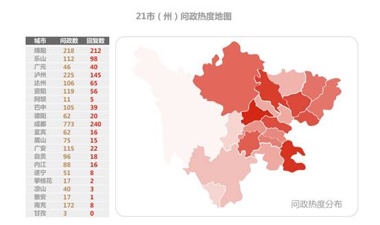 問政回復(fù)率:成都網(wǎng)友問政最熱情 綿陽回復(fù)率最高
