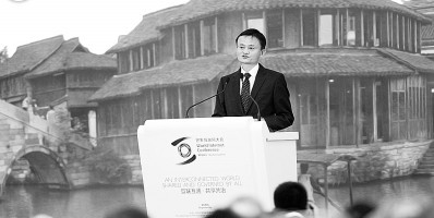 首屆世界互聯(lián)網(wǎng)吸引了廣泛的關(guān)注,圖為阿里巴巴集團董事會主席馬云在開幕式上致辭