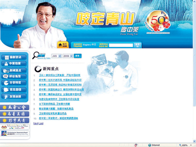 值得一提的是廖中萊個(gè)人網(wǎng)頁的奪目主題實(shí)是令人感受到他氣勢(shì)如虹,“咬定青山”4字清楚表現(xiàn)出他對(duì)自己于政壇表現(xiàn)的信心,或也可能是他對(duì)馬華黨選時(shí)的自信。