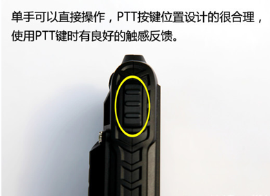 單手可以直接操作,PTT按鍵位置設(shè)計的很合理,使用PTT鍵時有良好的觸感反饋。