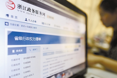 浙江省自去年11月份以來建成了省、市、縣三級聯動的政務服務網。這是浙江政務服務網上公布的省級行政權力清單。