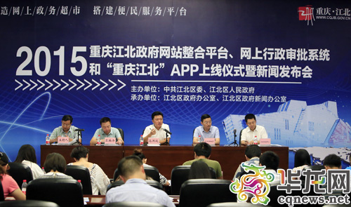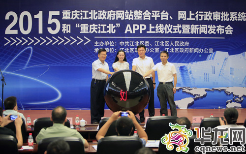 今日,2015重慶江北政府網(wǎng)站整合平臺、網(wǎng)上行政審批系統(tǒng)和“重慶江北”APP上線儀式暨新聞發(fā)布會舉行。 記者 李文科 攝