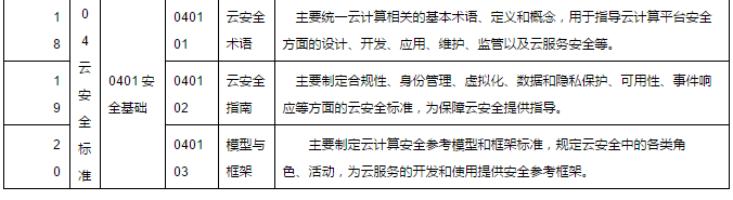 4.云安全標(biāo)準(zhǔn)。用于指導(dǎo)實現(xiàn)云計算環(huán)境下的網(wǎng)絡(luò)安全、系統(tǒng)安全、服務(wù)安全和信息安全,主要包括云計算環(huán)境下的安全管理、服務(wù)安全、安全技術(shù)和產(chǎn)品、安全基礎(chǔ)等方面的標(biāo)準(zhǔn)。