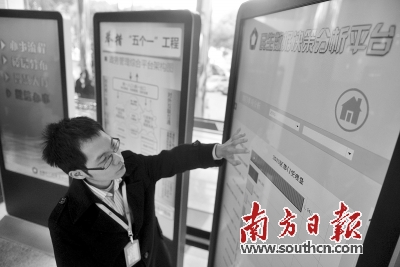 南海行政服務(wù)中心工作人員展示民生數(shù)據(jù)決策分析平臺(tái)