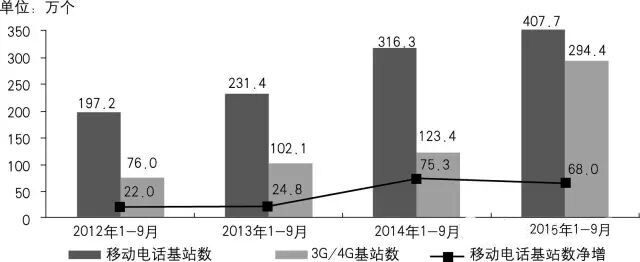 圖2 我國移動電話基站數(shù)發(fā)展情況