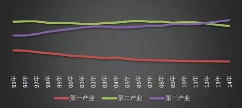 圖 1 1995-2014年我國GDP三次產(chǎn)業(yè)構(gòu)成