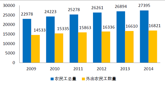 圖 4 2009-2014年我國農(nóng)民工數(shù)量