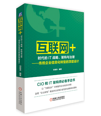 針對這些難題,劉繼承先生近日出版的專著《互聯網+時代的IT戰(zhàn)略、架構與治理》逐一作了回答。該書以頂層設計思維指導企業(yè)信息化轉型,以“企業(yè)架構”方法實現信息化戰(zhàn)略規(guī)劃和落地。全面闡述了互聯網+背景下信息化戰(zhàn)略、業(yè)務架構、應用架構、數據架構、技術架構及IT治理體系的轉型和創(chuàng)新之道。