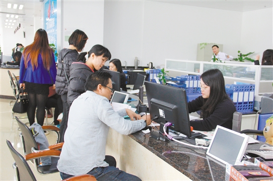 高新區(qū)綜合服務中心內,市民正在窗口辦理業(yè)務。