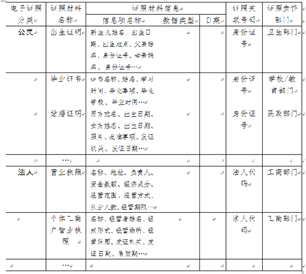 電子證照是指政府部門和取得法定資質的第三方服務機構依法形成出具的具有法律效力的各類批文、證件、執(zhí)(牌)照、鑒定報告、證明材料,以及社會公眾向證照形成單位提交的各種申請文件及相關證明材料等的電子文件。電子證照主要包括工商營業(yè)執(zhí)照、稅務登記證等法人使用的證照,出生證、結婚證、房產證、駕駛證等自然人使用的證照。例如,電子營業(yè)執(zhí)照是根據國家有關企業(yè)登記注冊的法律法規(guī),由依法成立的具有認證資格的第三方機構,以數字證書為基礎,制作載有企業(yè)注冊登記信息的數字證書,由工商行政管理部門監(jiān)制、核發(fā),是企業(yè)和個體工商戶唯一合法的電子營業(yè)執(zhí)照。