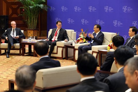 “大數(shù)據(jù)、云計(jì)算的確讓互聯(lián)網(wǎng)時(shí)代上了一個(gè)新的臺(tái)階,讓信息、數(shù)據(jù)滲透到人類生活的方方面面。我剛才所舉的‘西服’的例子就是一個(gè)很好的說明。”李克強(qiáng)回應(yīng)。