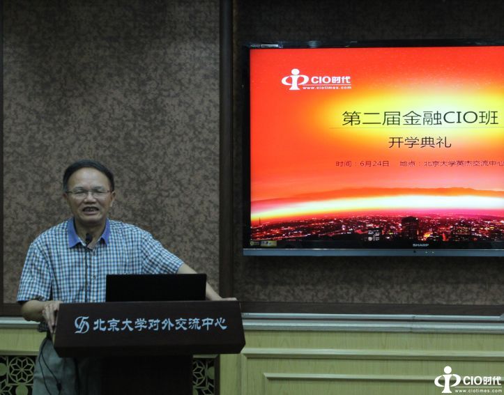 隨后,CIO時(shí)代信息化學(xué)院學(xué)術(shù)委員會主席、北京大學(xué)信息管理系博士生導(dǎo)師賴茂生先生致辭。他首先歡迎同學(xué)們參加“第二屆金融CIO班”的學(xué)習(xí),。隨后他說:CIO班已經(jīng)開辦十一年了,迄今為止開設(shè)了22屆普通CIO班、9屆政府CIO班、3屆互聯(lián)網(wǎng)CIO-CTO班、4屆醫(yī)療衛(wèi)生CIO班等等,已有2000多名來自全國各地的CIO們在北大學(xué)習(xí)過。最后,他給學(xué)員們簡單介紹了CIO產(chǎn)生的歷史背景、CIO的職責(zé)與素質(zhì)要求,以及CIO培訓(xùn)的知識體系等。