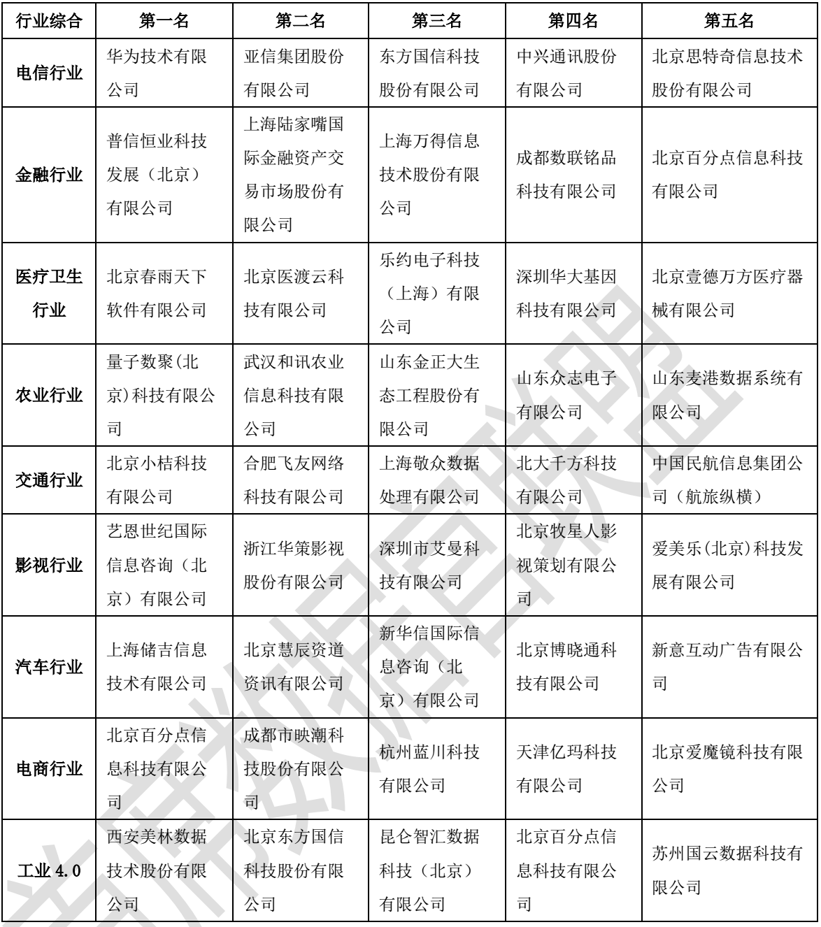2016《中國(guó)大數(shù)據(jù)企業(yè)排行榜》如下: