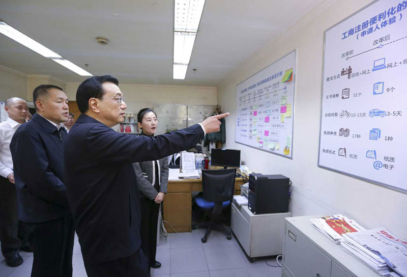 (資料圖)2015年3月20日,李克強(qiáng)考察工商總局。在企業(yè)注冊局注冊指導(dǎo)處,他重點了解商事制度改革最新進(jìn)展;在數(shù)據(jù)分析室,他側(cè)重考察監(jiān)管能力建設(shè)??偫黼S后主持召開座談會,研究部署進(jìn)一步深化商事制度改革,推進(jìn)大眾創(chuàng)業(yè)、萬眾創(chuàng)新。中央編辦、發(fā)改委、工信部、財政部等14部委主要負(fù)責(zé)人參加會議。