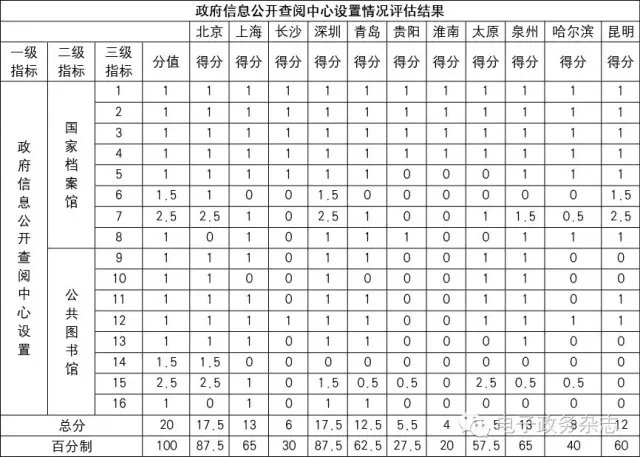 (二)政府信息公開查閱中心評估結(jié)果分析