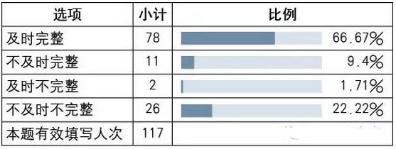 條例第十六條規(guī)定事涉政府信息公開工作人員。沒有政府信息的移送,查閱中心的建設就是一個空架子。因此,針對政府信息公開工作人員的調(diào)研實為必要?;谡块T作為政府信息提供主體的特殊性,我們設計了五個問題:①您部門是否向圖書館、檔案館政府信息公開查閱中心提供政府信息?②您部門向圖書館、檔案館的政府信息公開查閱中心提供政府信息是否及時完整?③您覺得,未來是否有必要繼續(xù)在圖書館、檔案館設置政府信息公開查閱中心?④【第3題回答必要時填寫】您認為有必要設置的理由是如下哪幾個?⑤【第3題回答不必要時填寫】您認為沒有必要設置的理由是如下哪幾個?針對這些問題,我們回收了117份問卷。這些問卷部分通過線下調(diào)研、線上錄入的方式展開,還有一部分通過線上向政府信息公開工作人員開展。