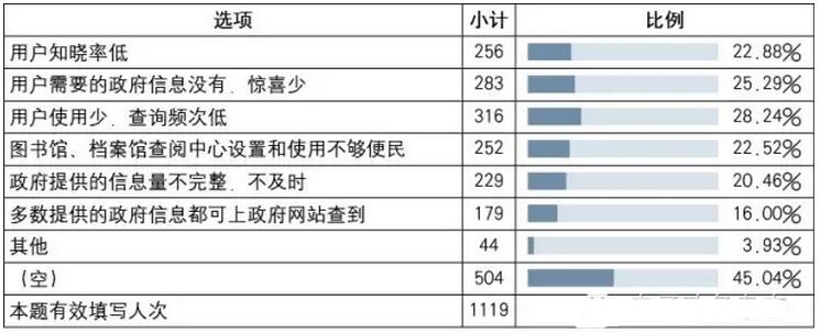 公眾認為沒有必要繼續(xù)設置的主要理由(參見表22),首先是不知道,知道后也很少用,用了也找不到想要的,加上多數(shù)提供的政府信息都可上政府網(wǎng)站查找到,繼續(xù)設置的必要性大打折扣。公眾認為造成這種結(jié)果的原因有圖書館、檔案館查閱中心設置和使用不夠便民,也有政府提供的信息量不完整、不及時等方面的原因。