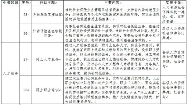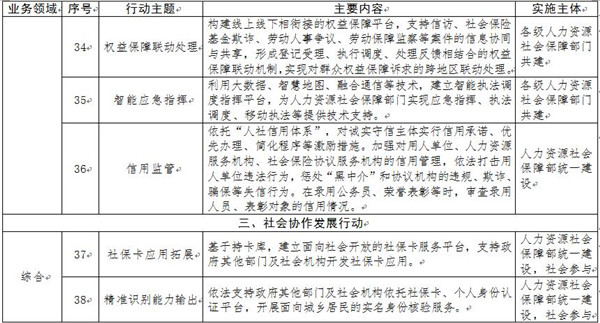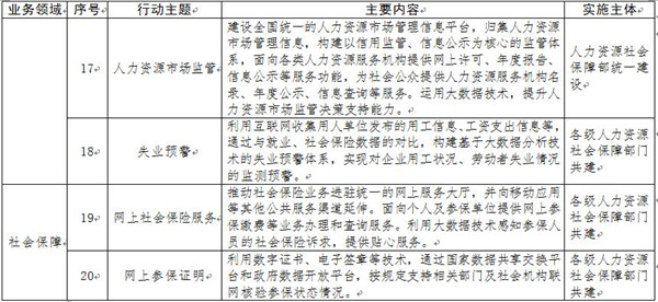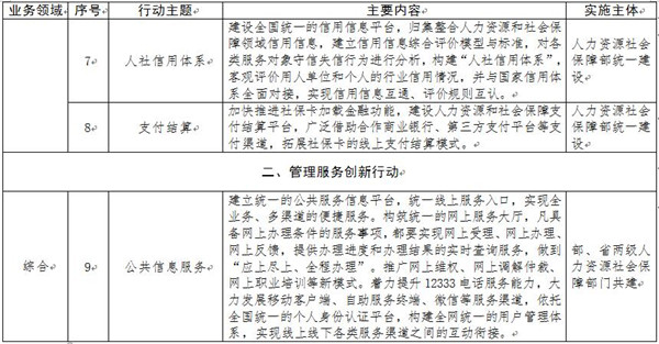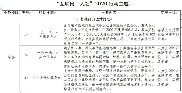 “互聯(lián)網(wǎng)+人社”2020行動計劃由基礎(chǔ)能力提升、管理服務(wù)創(chuàng)新和社會協(xié)作發(fā)展三項行動計劃組成,共包括48個行動主題(見附件)。